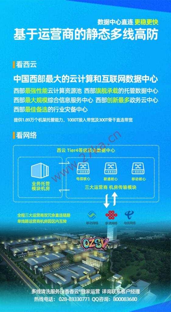 西云承载能力:提供1.89万个机架托管能力,1000T接入带宽、300T骨干直连带宽。全程三大运营商双冗余直连链路,单线路运营商机房园区内互转。