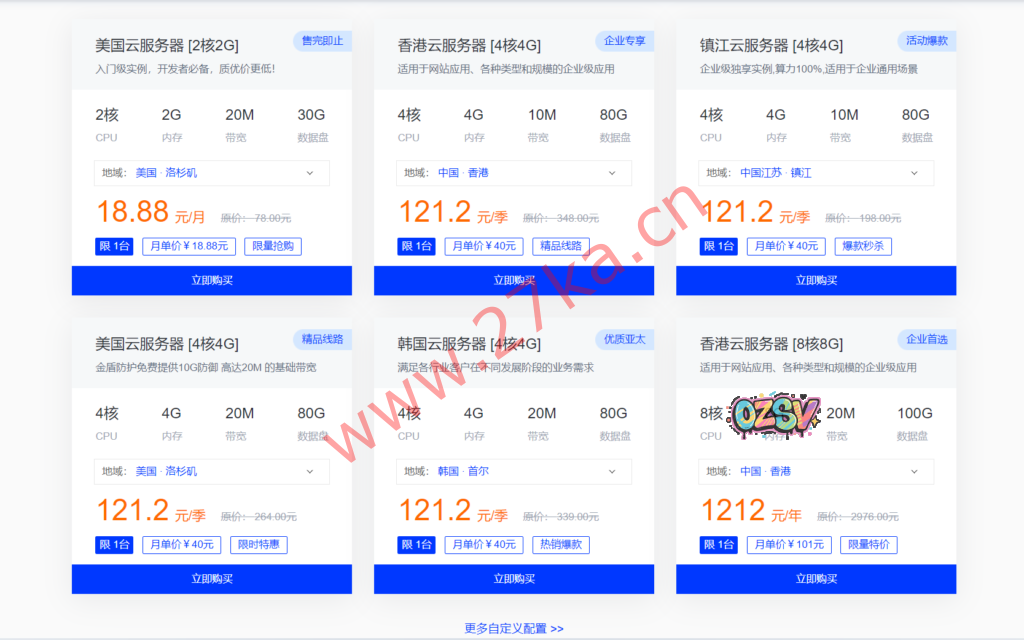 | 美国云服务器 | 2核 | 2G | 20M | 30G | 18.88元/月 |