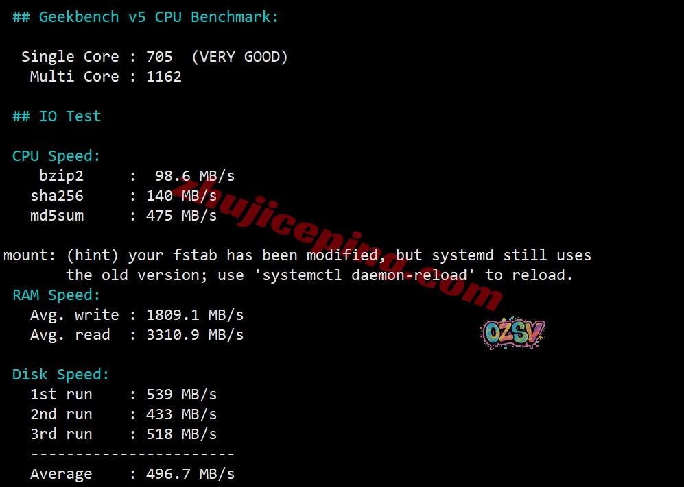 VPS性能测试,部分跑分结果如下: