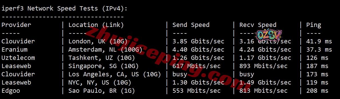 IPERF3测试,几个国际节点的实测数据如下: