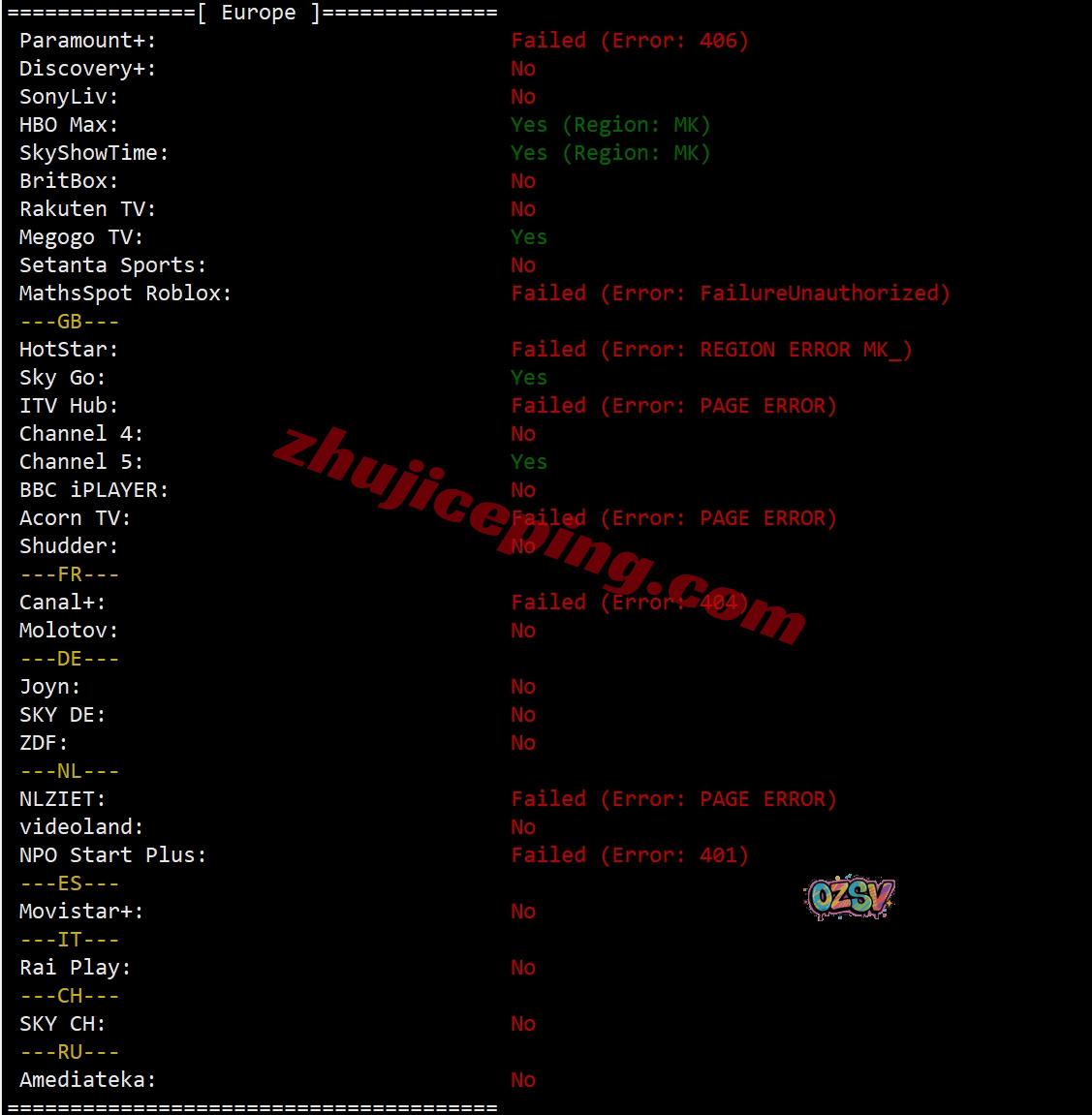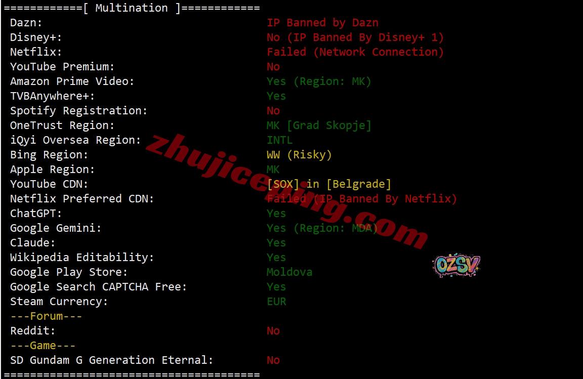 部分流媒体解锁测试结果如下:
