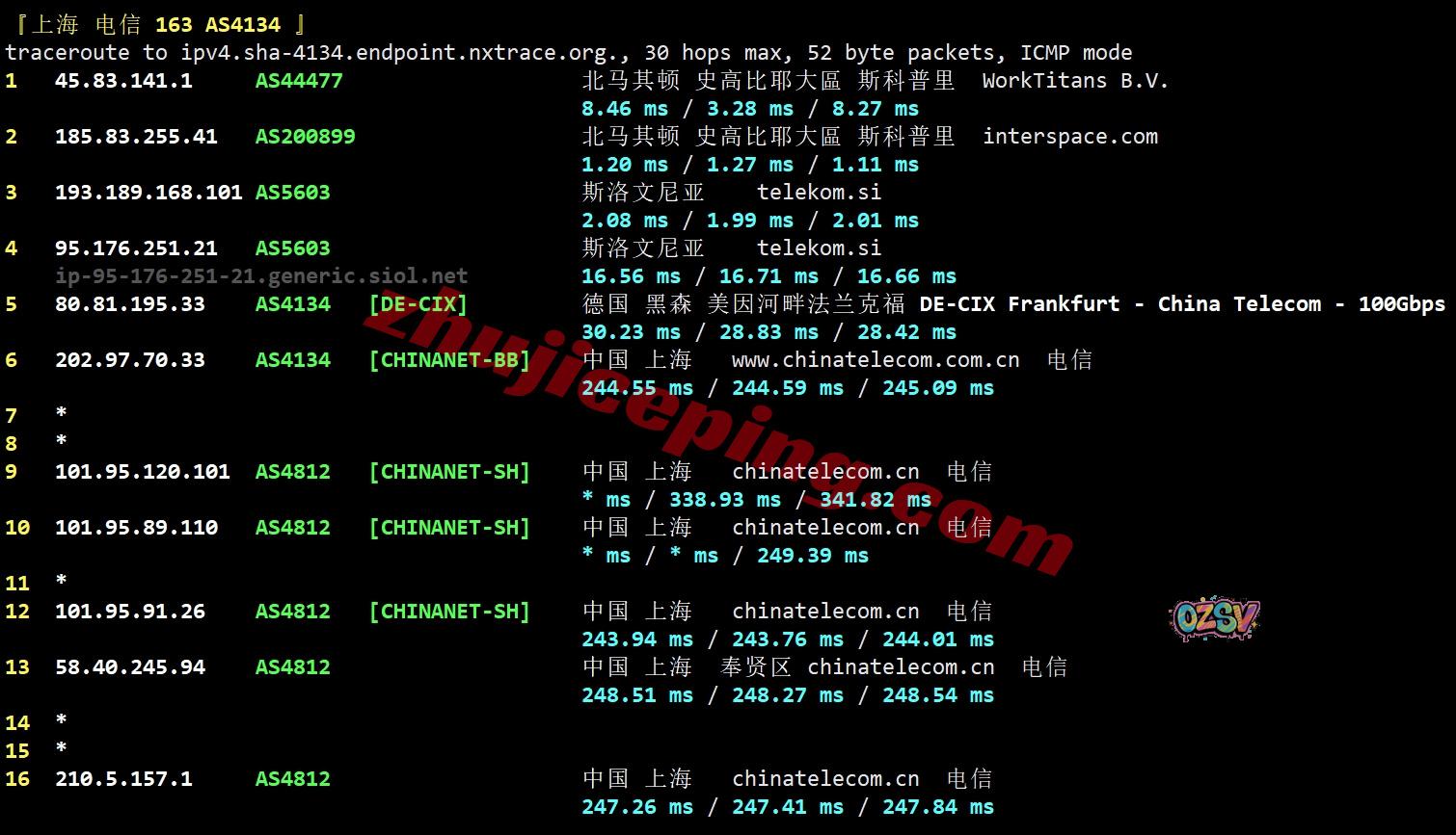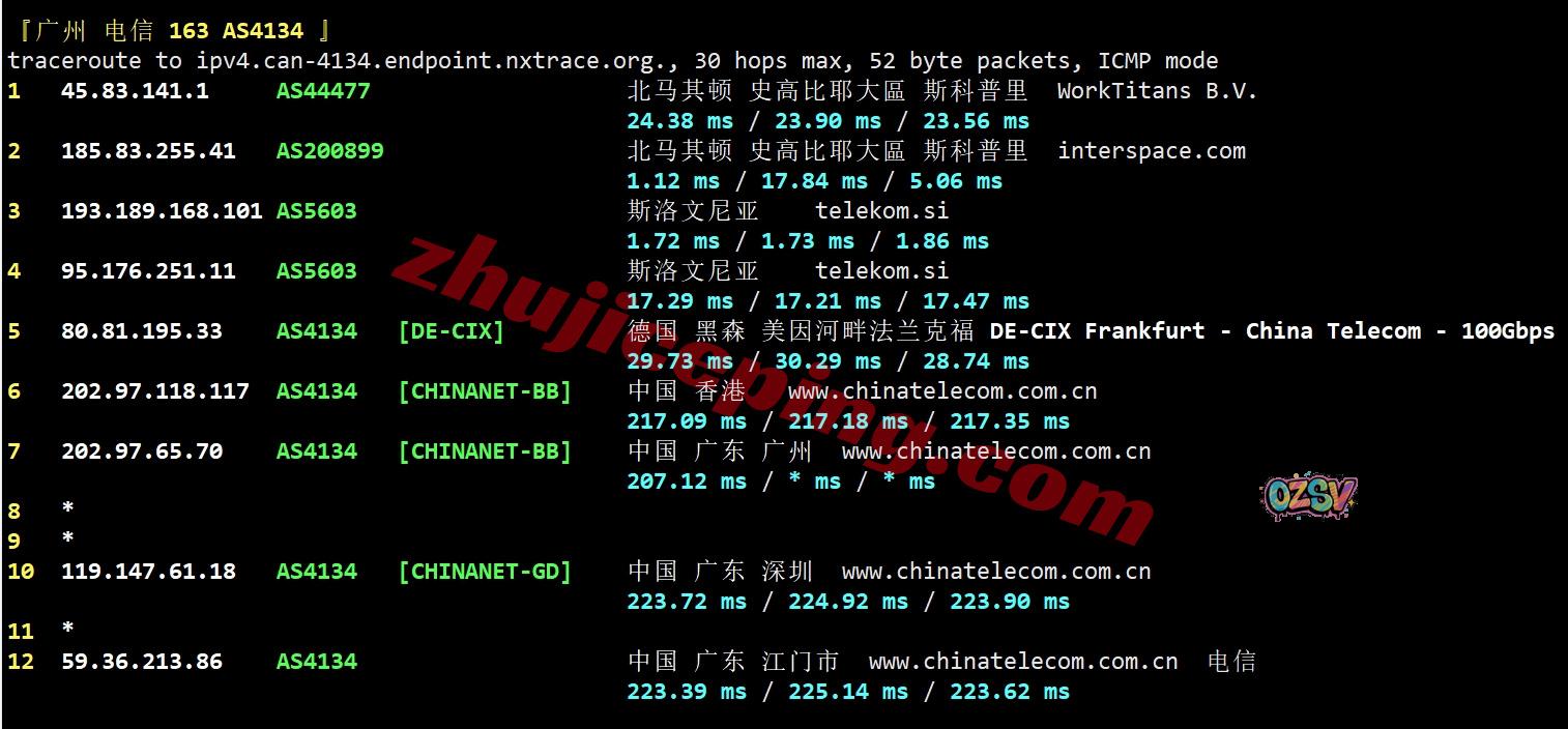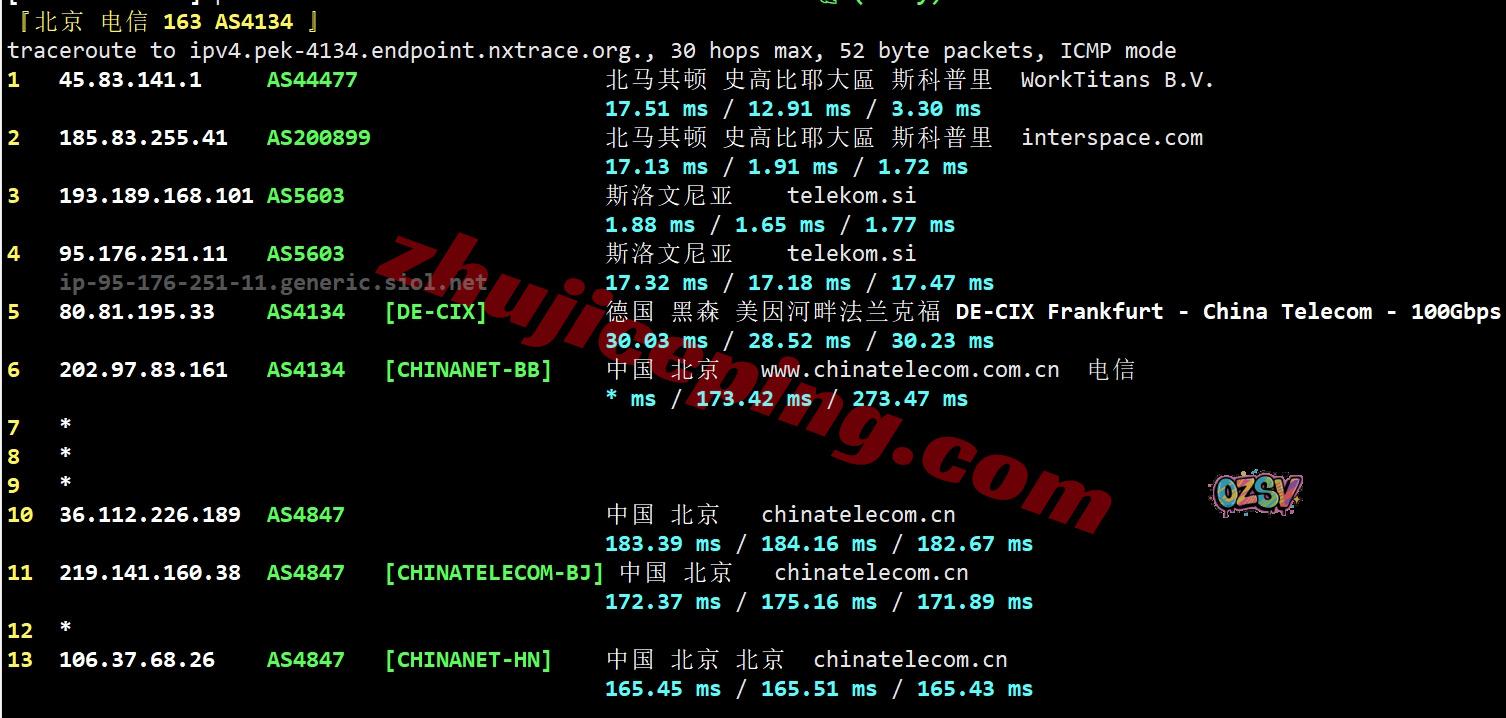 电信回程:走telekom经过斯洛文尼亚去德国,从德国DEX-CIX数据交换中心接电信直连回国