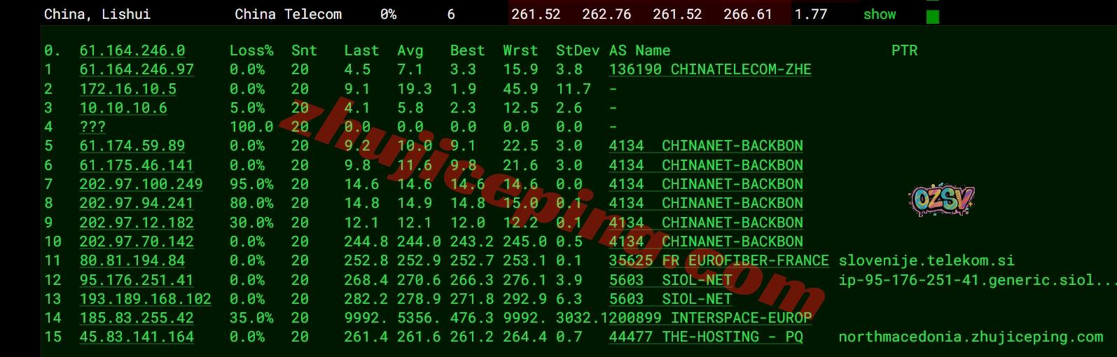 电信去程:直连电信德国法兰克福节点然后转telekom.si去斯洛文尼亚再去北马其顿