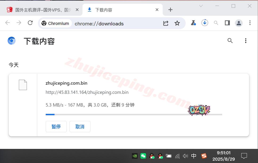 站长广州联通家宽直接下载存放于VPS上的文件,大致的下载速度如下所示:
