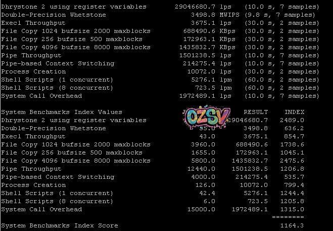 unix bench mark,单核有1164.3,你还奢求什么,很可以了!