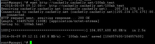 跑个cachefly,G口速度可以,晚上9点40左右测试的: