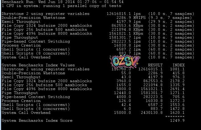 单核unix bench有1249分,你还在奢求多少?碉堡了!