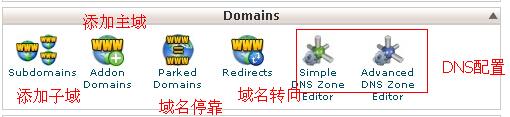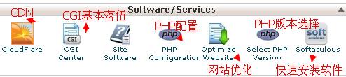 登陆cPanel之后我们按照从上至下,从左至右的顺序来一一图解具体用途: