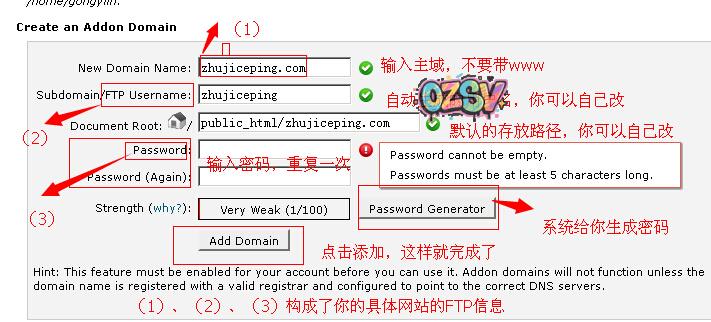 接着上面添加域名详细说下:(其中FTP资料可以去”Files里面的FTP里面查看“)