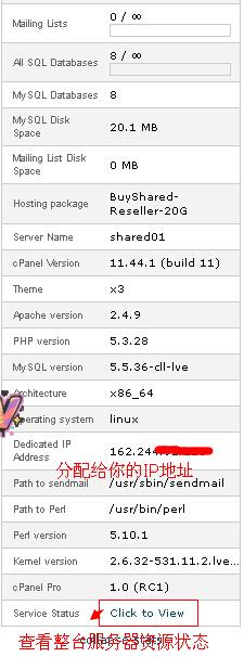 cPanel面板左侧一竖列的参数解释:基于上是告诉你你可以最大用多少资源,当前你已经用了多少资源