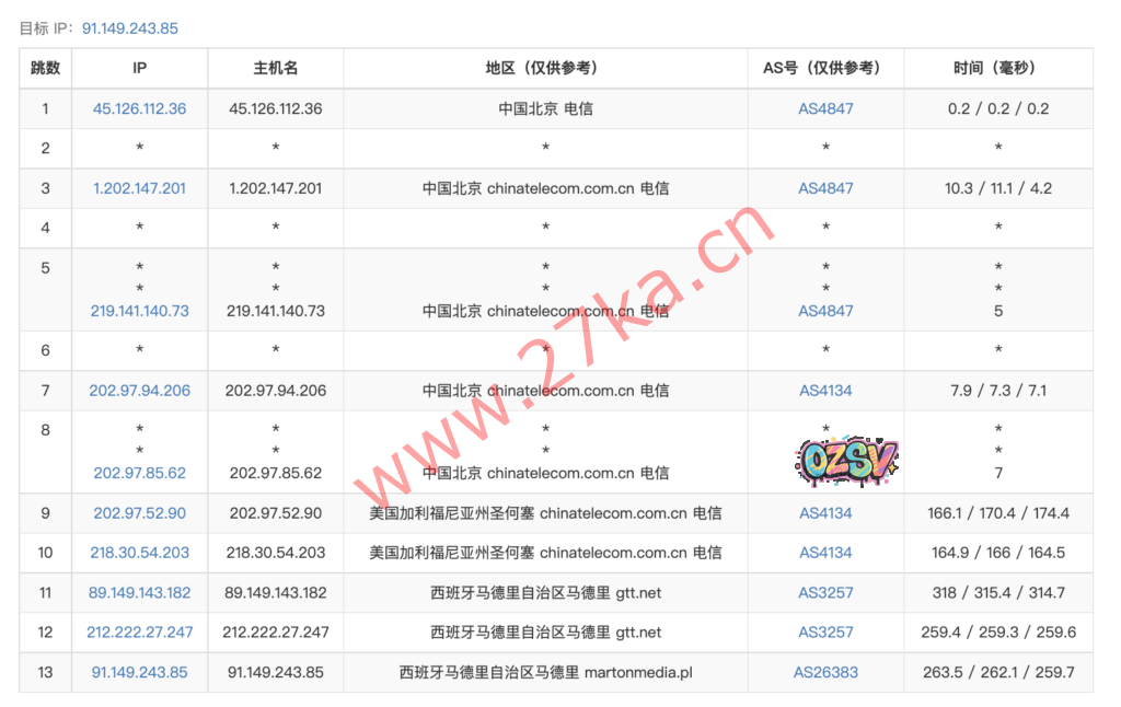 | 电信线路 | 78 | 天津(天翼云) 237.3 毫秒 | 西藏拉萨(天翼云) 332.9 毫秒 | 281.7 毫秒 |