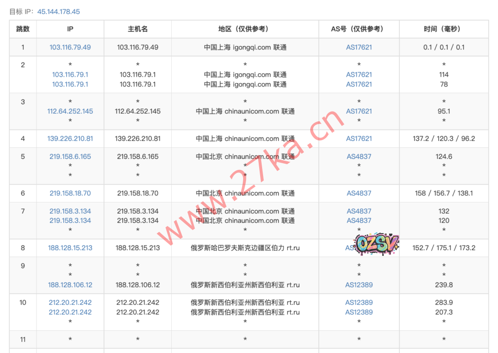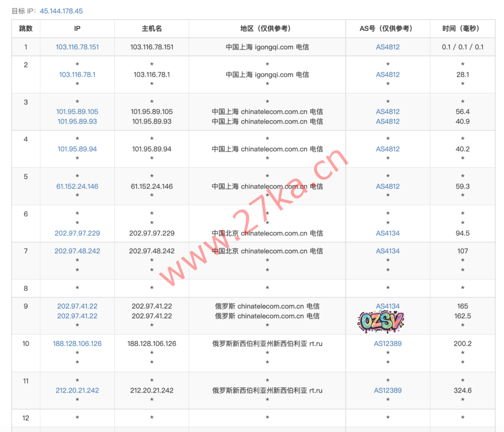 7、JustHost俄罗斯新西伯利亚TTK机房VPS国内电信、联通、移动回程线路怎么样?是否直连?电信联通回程路线路直连、移动绕欧洲回国!