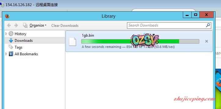 本人还测试了个host1plus芝加哥机房的Windows VPS,安装了个Firefox浏览器之后直接下载下面的文件:
