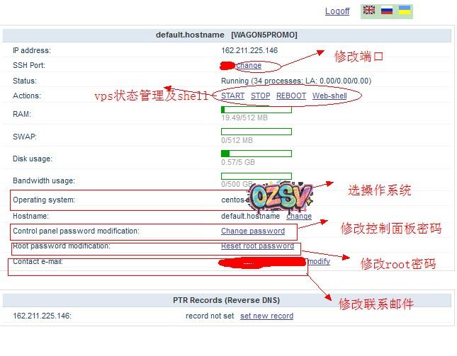西面是kiwivm管理面板截图,一些关键点我说明了,差不多有这些功能就足够你用了,有句名言说“Less is more” !