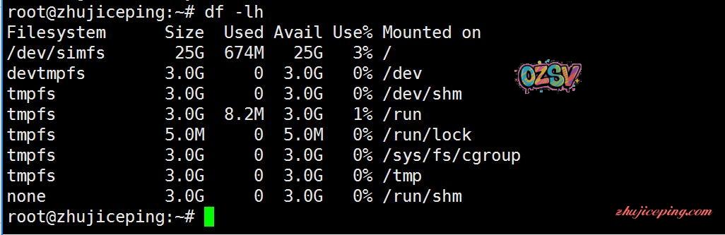 下面是这个小鸡的硬盘,5G内存+25G硬盘,有点儿扯淡啊….