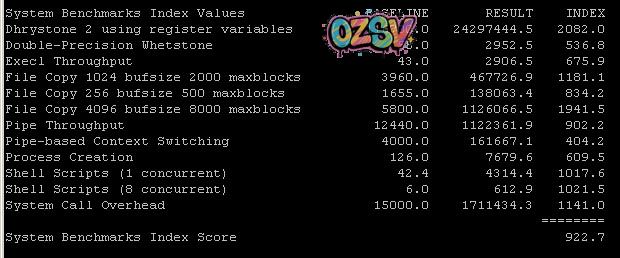 96M内存,32M vswap,1核E5-2620,unix bench跑分922