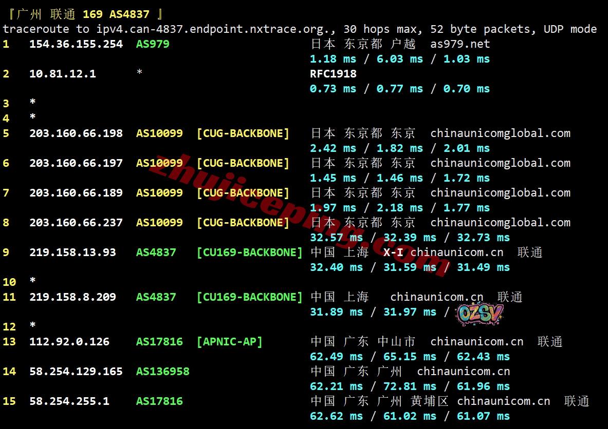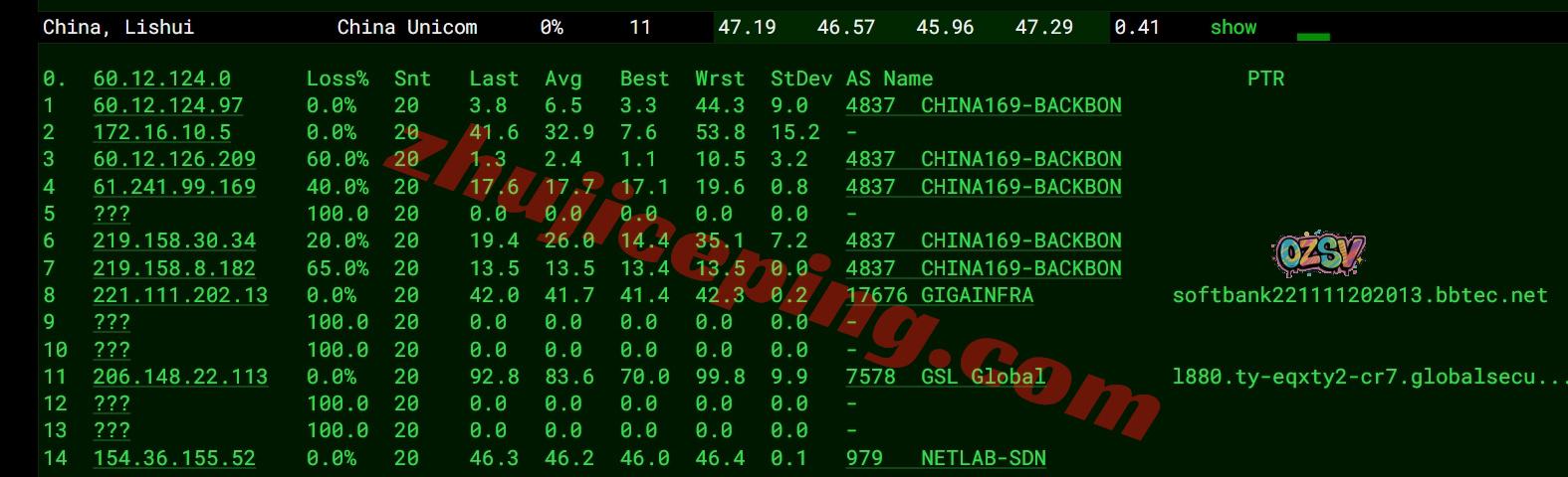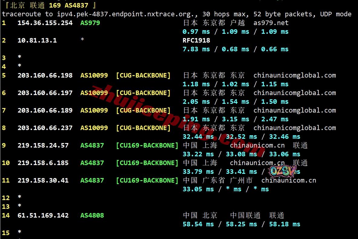联通去程:联通骨干接软银去日本后再走globalsecurelayer去机房