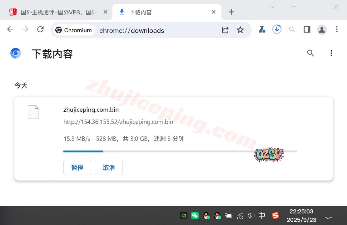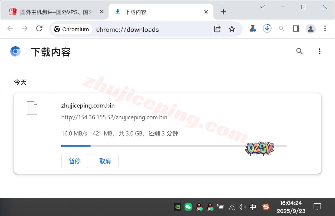 站长广州联通家宽用Chrome下载存放在测试VPS上的文件,大致的下载速度如下所示: