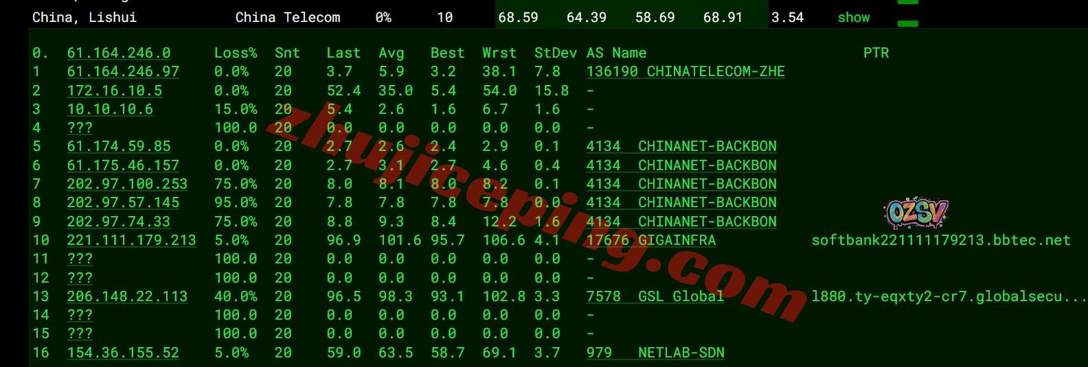 电信去程:电信骨干接软银去日本后再走globalsecurelayer去机房