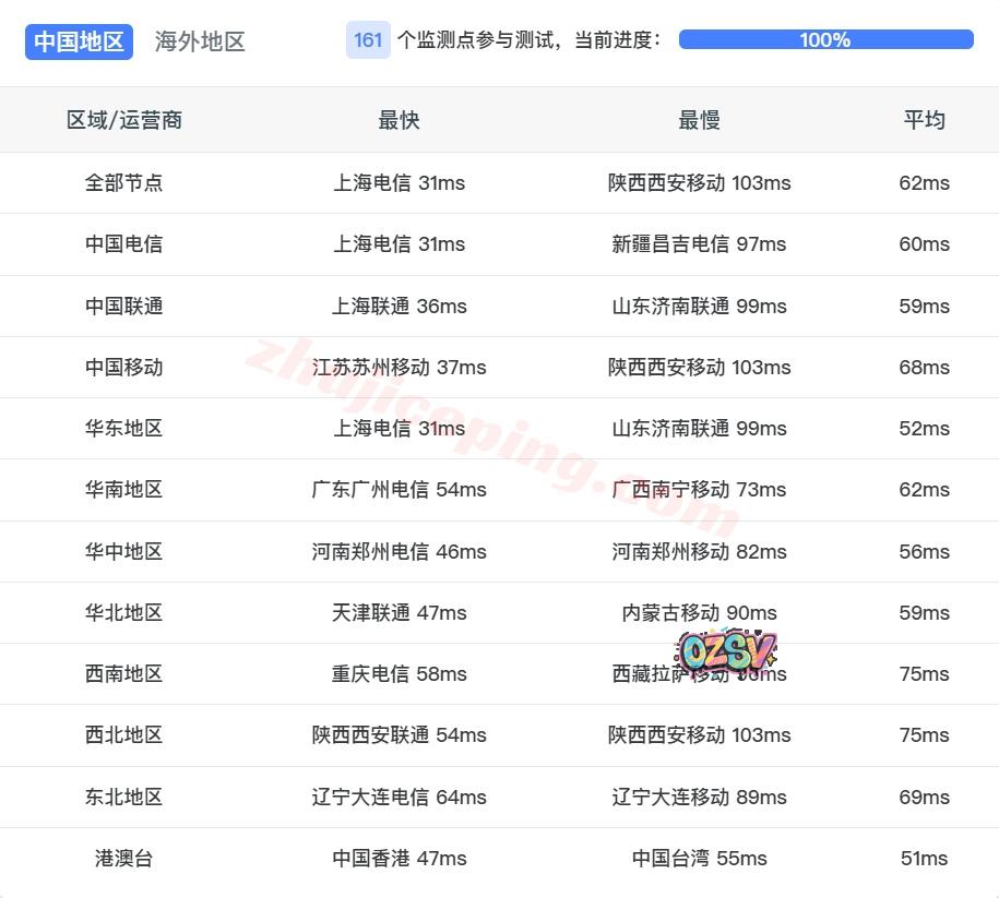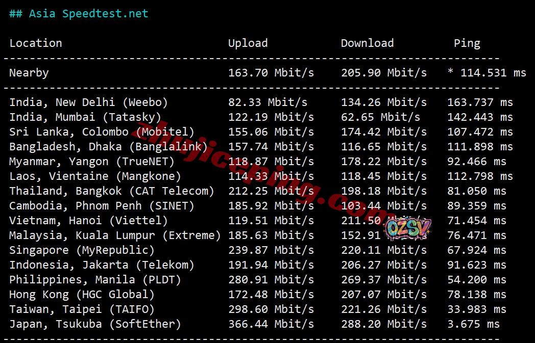 SpeedTest.Net的部分亚洲境内的节点的带宽上下行测试数据: