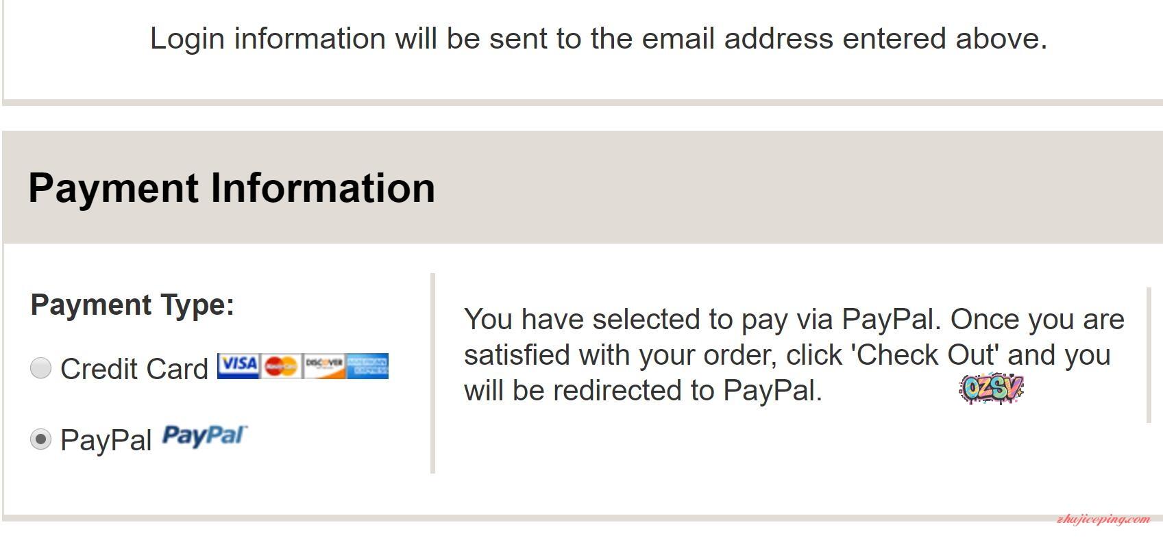 选择付款的方式:PayPal、信用卡