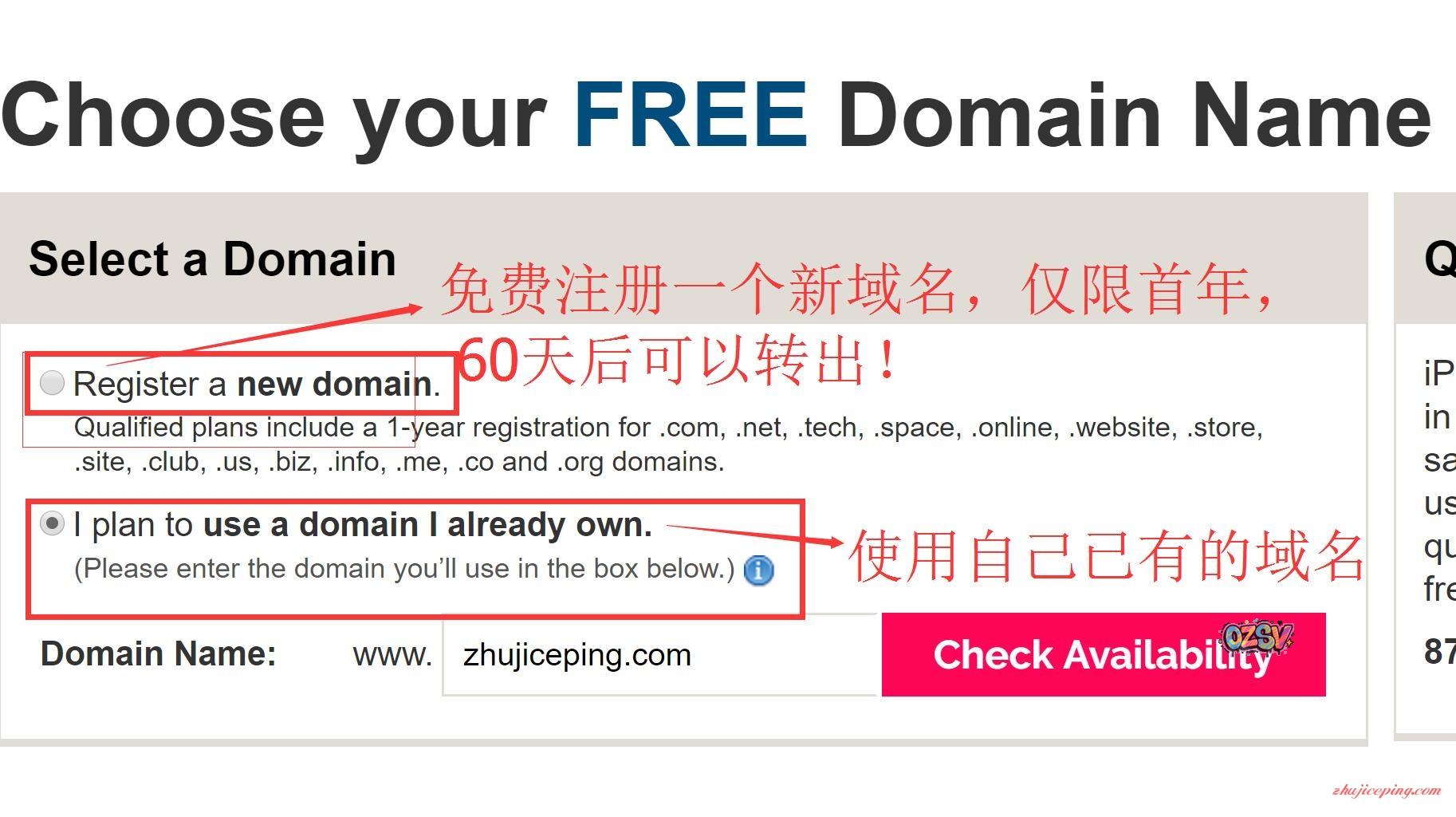 注册一个全新的域名 还是 使用自己已有的域名: