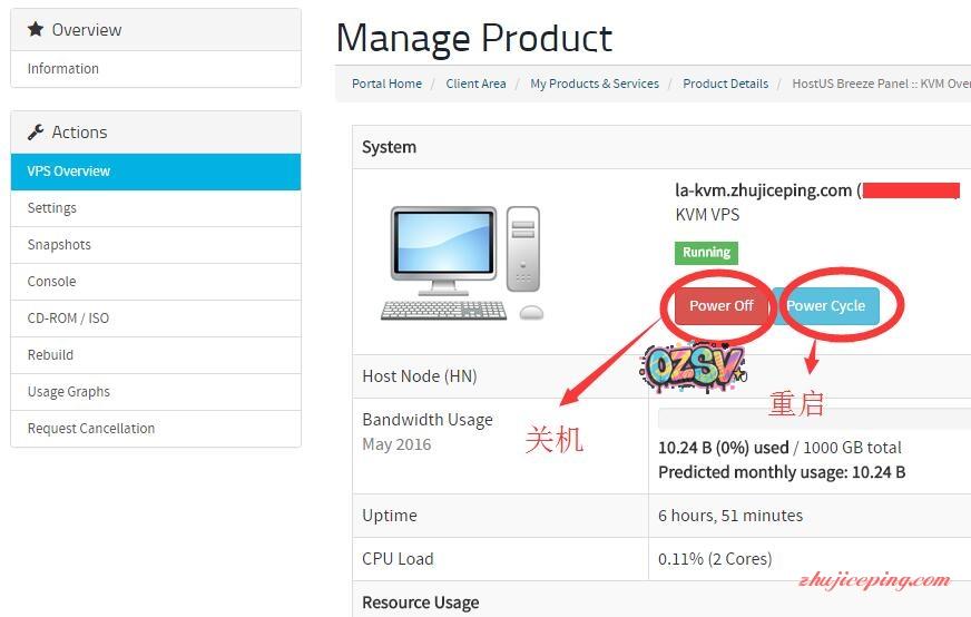 VPS Overview(图1): 没有所谓的restart重启,power cycle就是restart