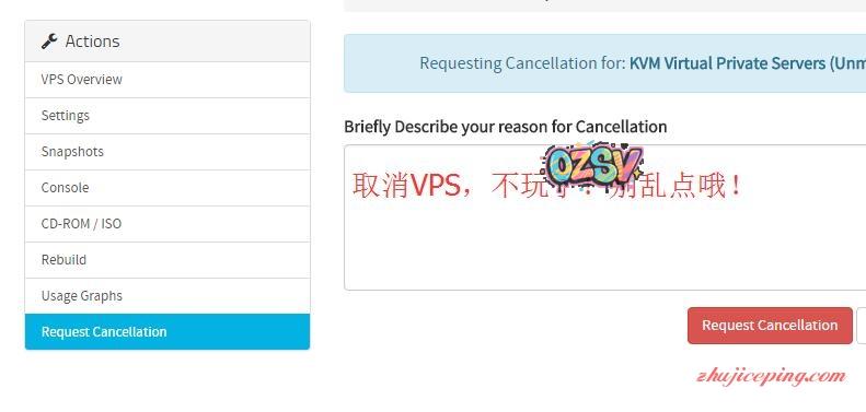 Request Cancellation :取消VPS,一般是不续费了,或者打算退款的时候才需要的。