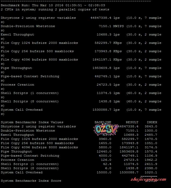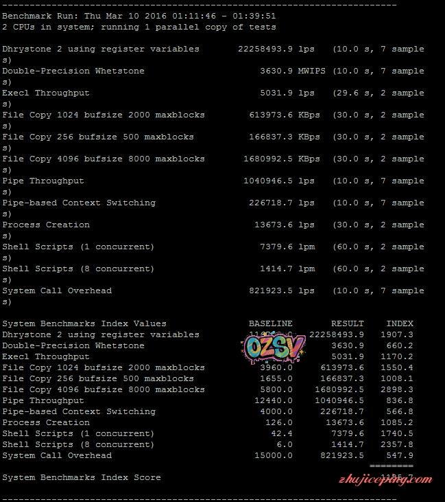 上Unix Bench检验服务器最重要的依据:2核跑下来有1800,不管怎么说都是可以接受的。