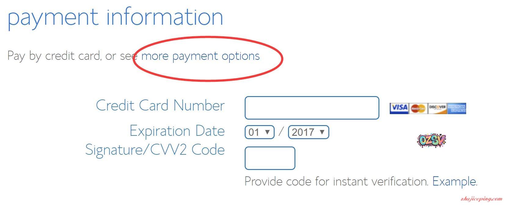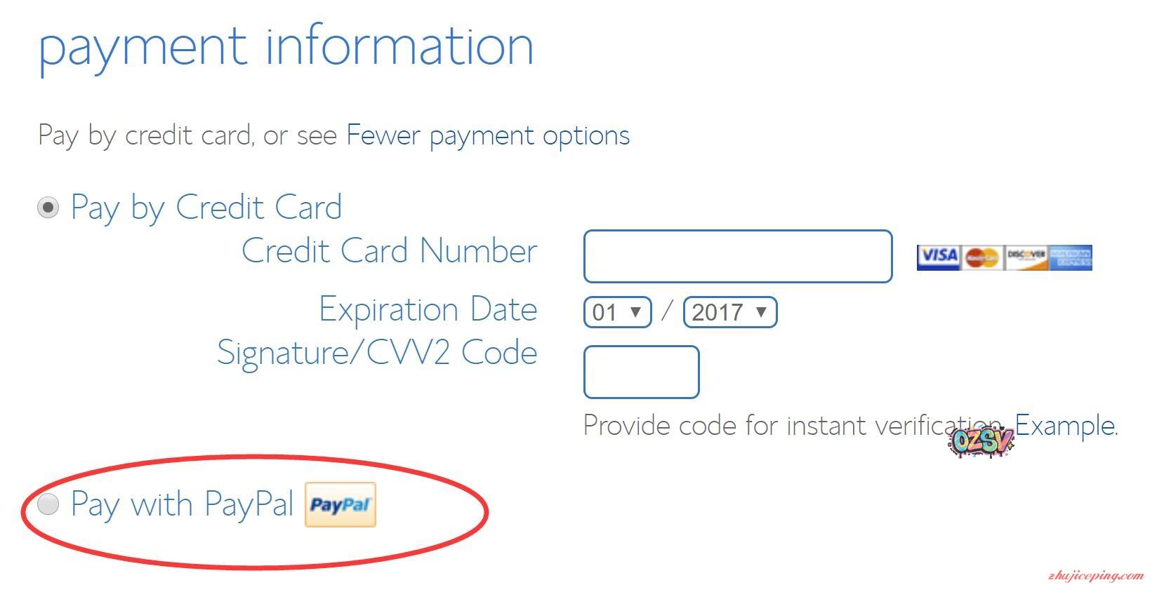 点击下图中的红色方框内的字体之后会出现paypal付款方式