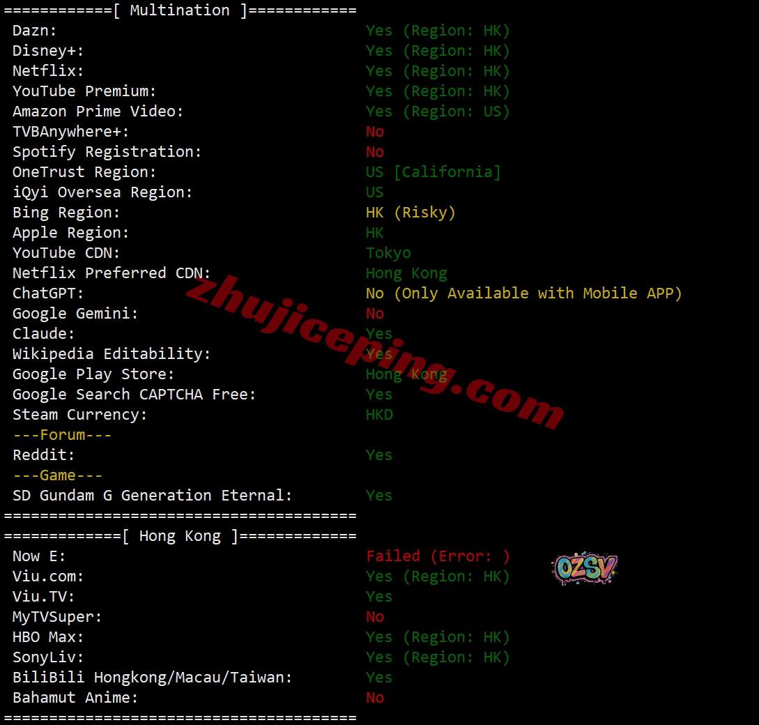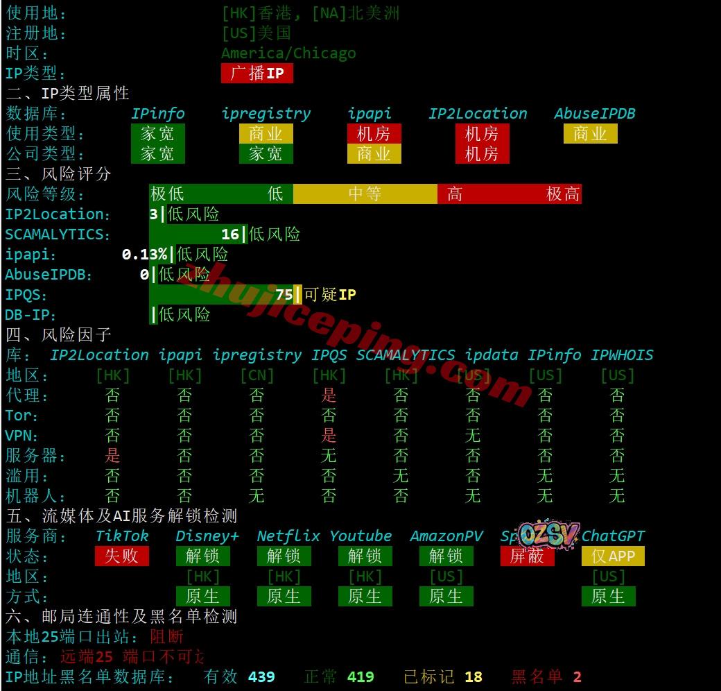 IPv4为美国IP广播到香港,可以解锁部分流媒体;