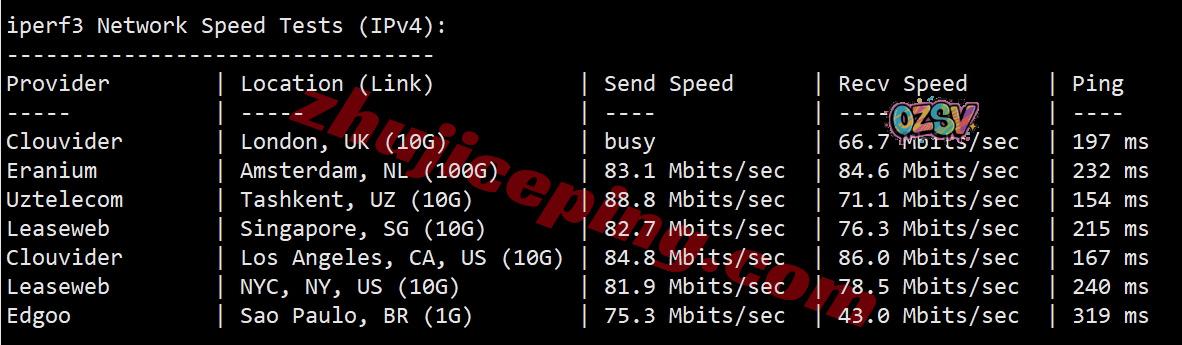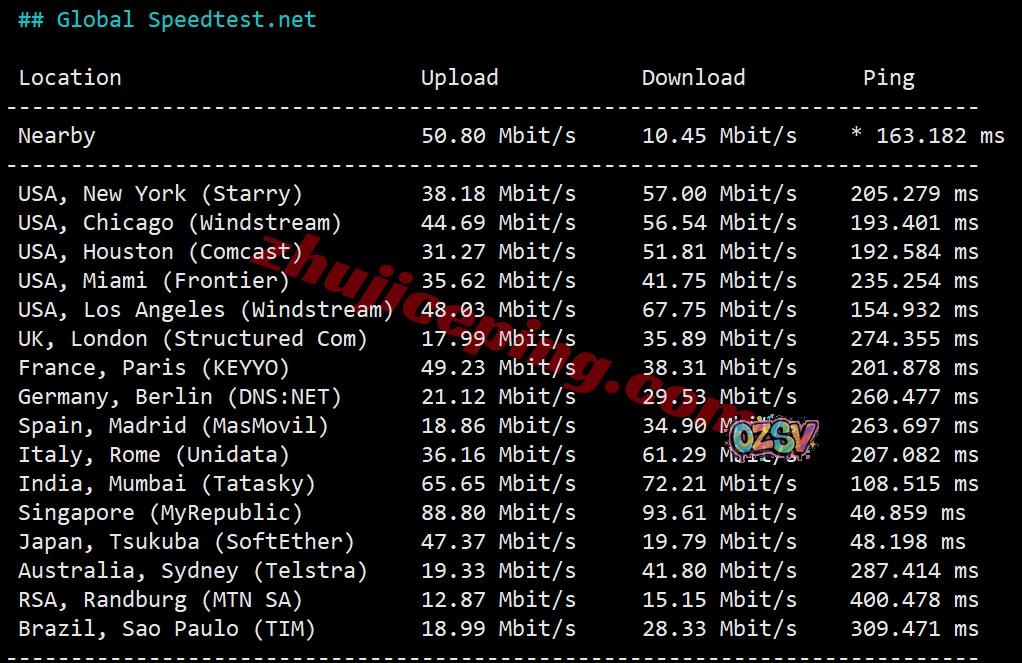 SpeedTest.Net的部分国际节点的带宽上下行测试数据: