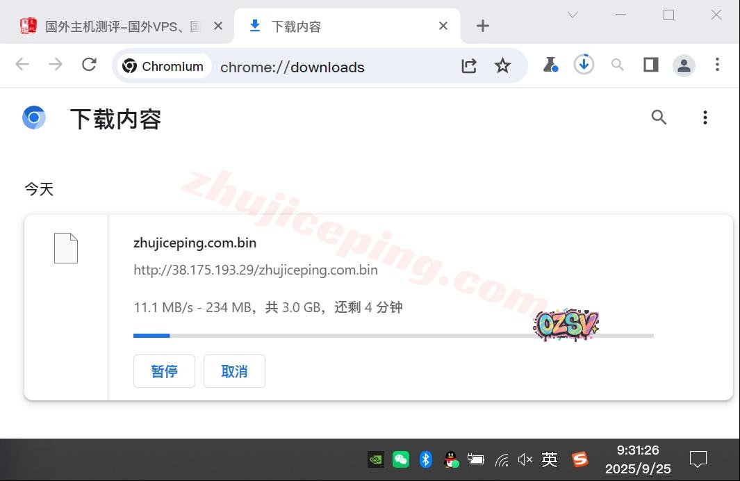 站长广州联通家宽直接用Chrome下载存放在测试VPS上的文件,大致的下载速度如下: