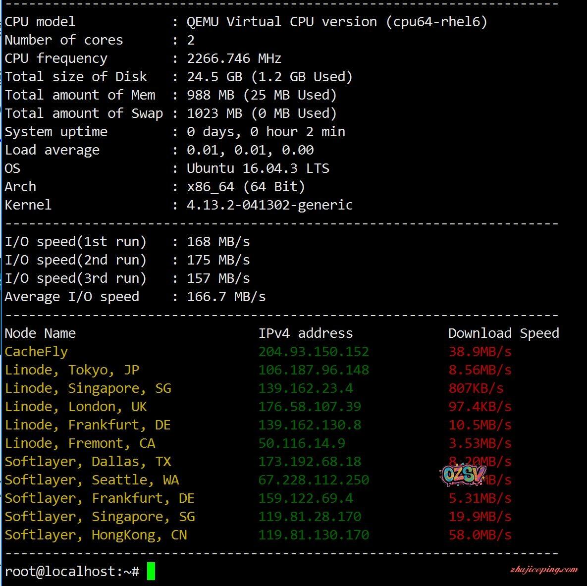 先看个大概1G内存,2.2GHz的主频,2核,I/O大约160M/S左右,下载速度最高58M/s.