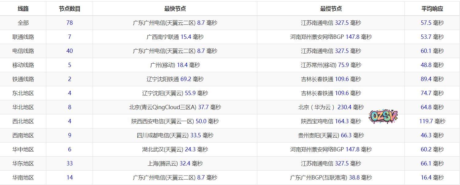 IPIP的数据,全国78个节点,平均PING值在57毫秒的样子: