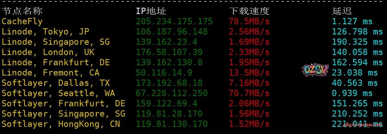 网络情况,1Gbps带宽,cachefly和soflayer的西雅图都能跑到七八十兆:
