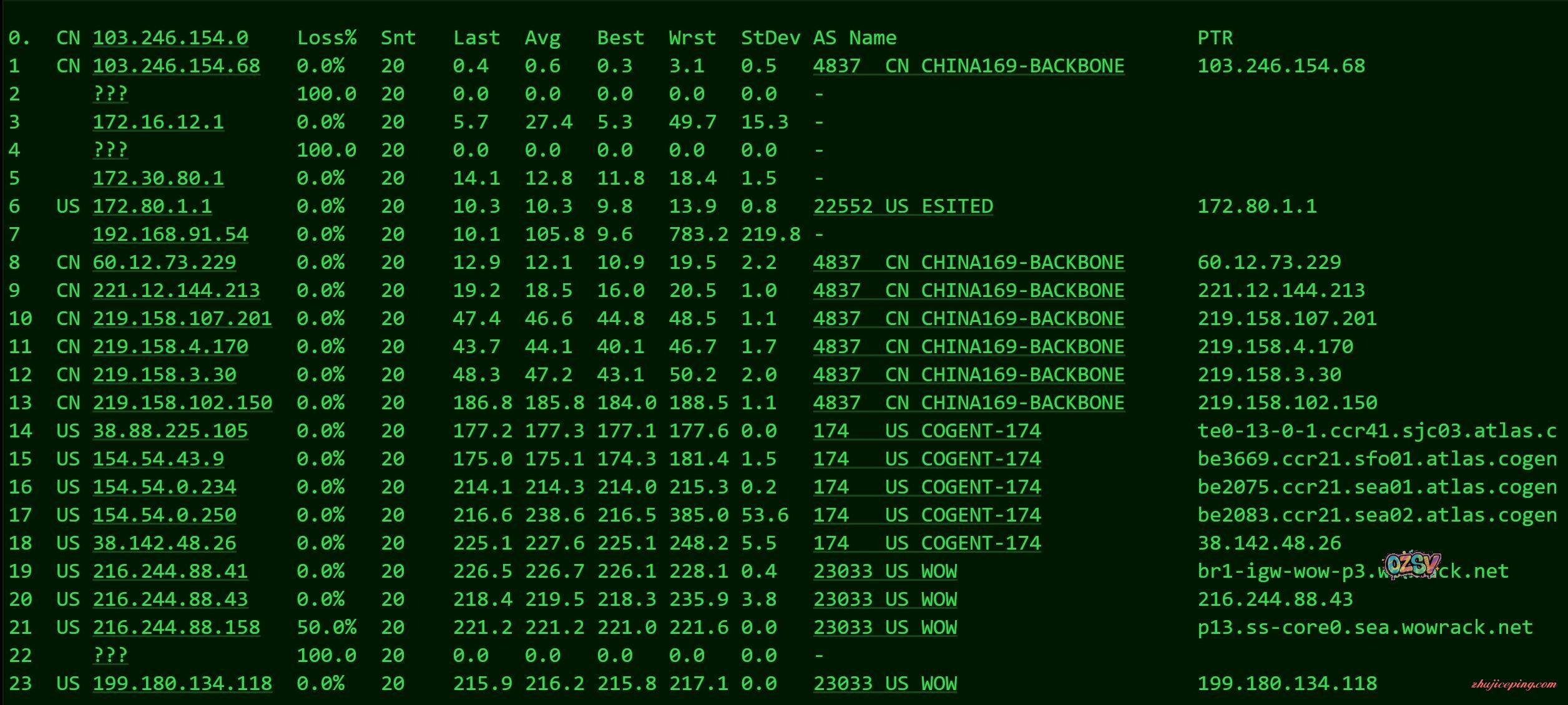 我们反过来看看回程路由: