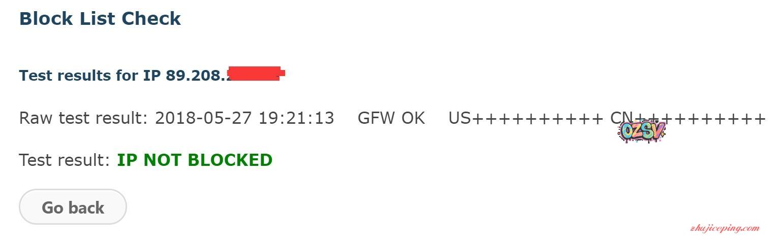 具体IP是否被”不可描述”,“Test result”后面的就是结果,如果”不可描述”了,那就换IP吧!