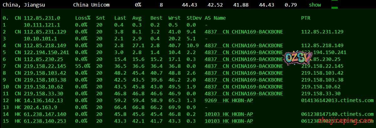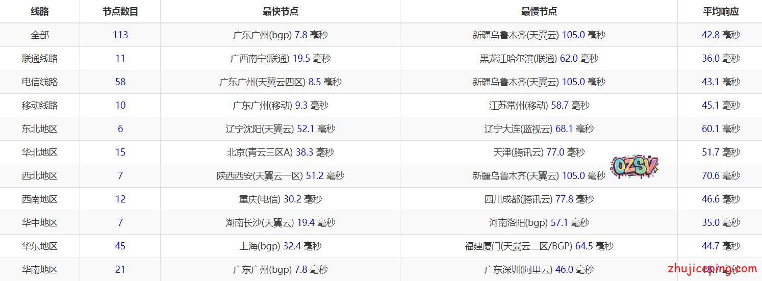 再看个国内113个节点的ping的最快、最慢、平均值吧,由IPIP提供: