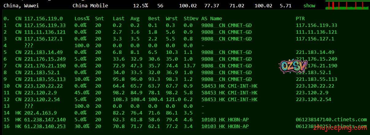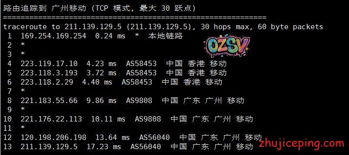 回程,路由追踪,(华南)广州(联通、电信、移动):