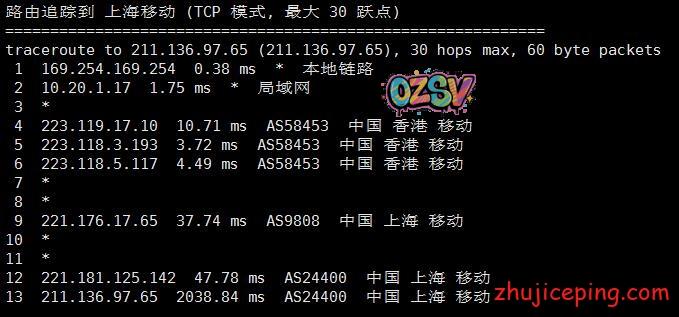 回程,路由追踪,(华东)上海(联通、电信、移动):