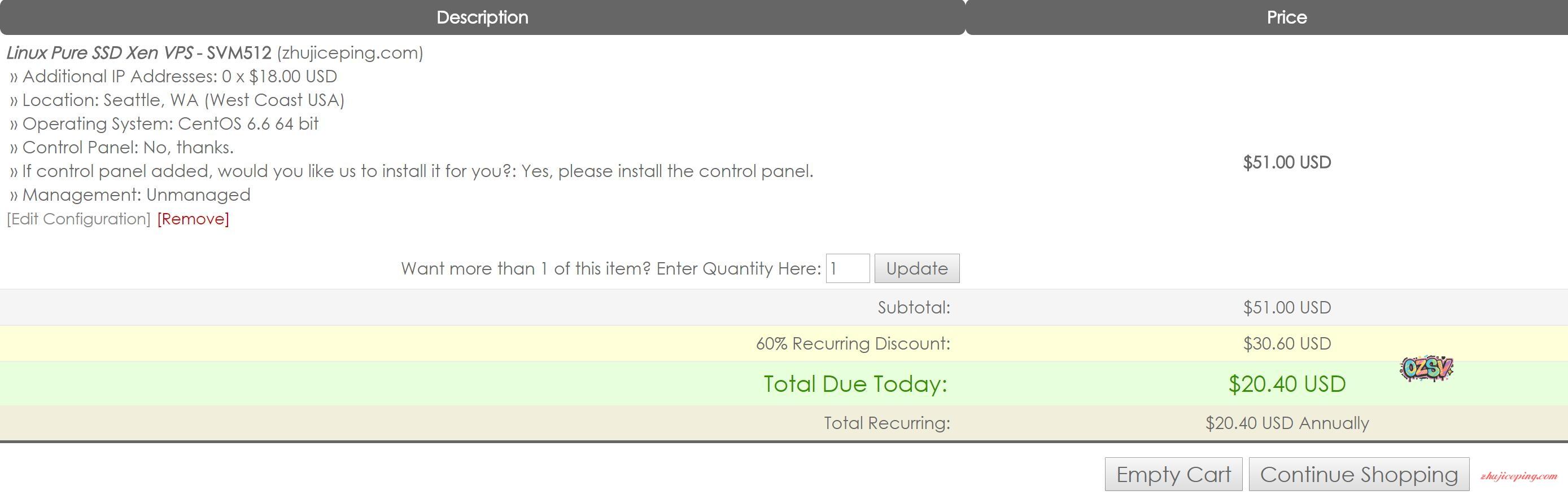Additional IP:额外购买独立IPv4的数目,后面的价格是月付,VPS默认已经自带一个IPv4