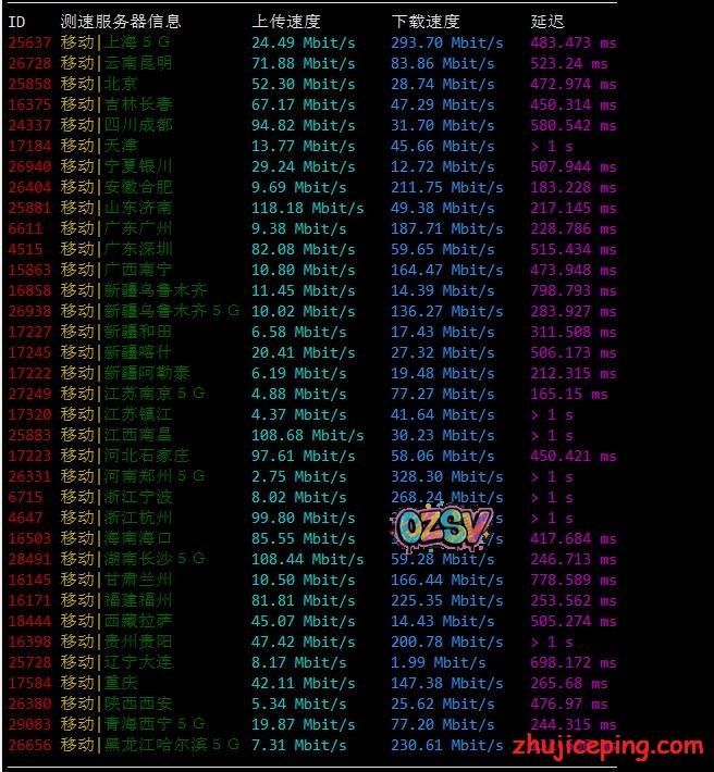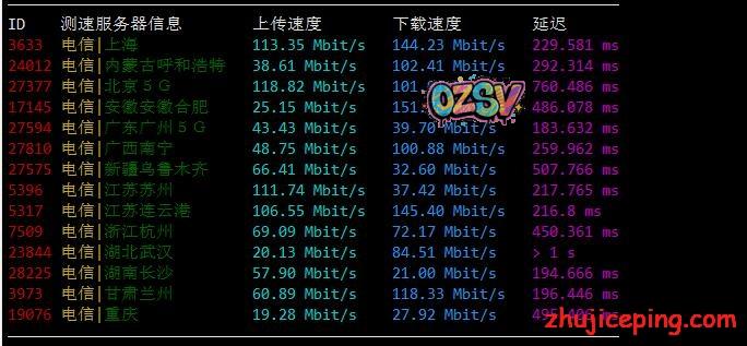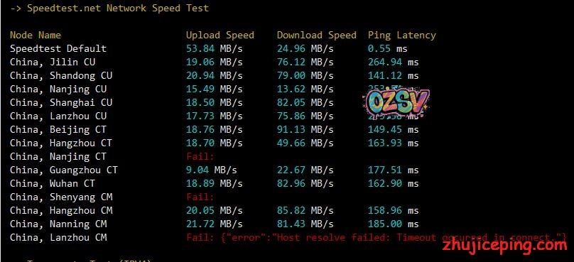 我们换个脚本也是跑speedtest的不同节点,给大家看看具体数据: