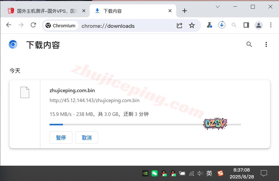 站长广州联通家宽直接用Chrome下载存放在测试VPS上的文件,大致的下载速度如下: