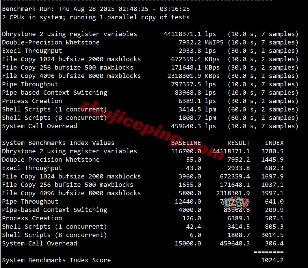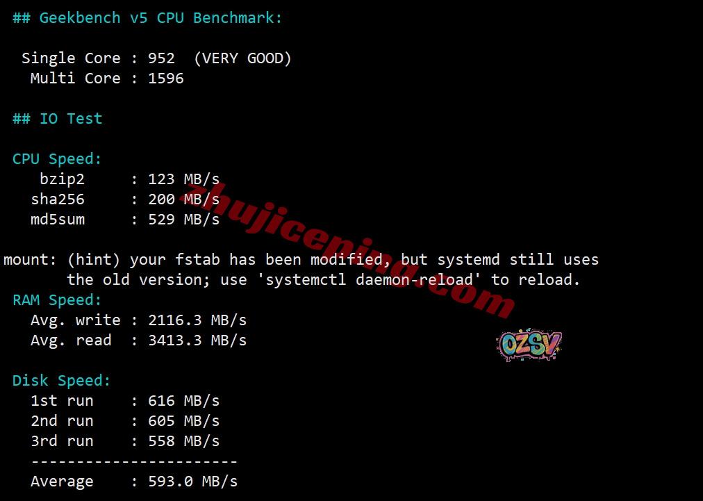VPS性能测试,部分跑分数据如下所示: