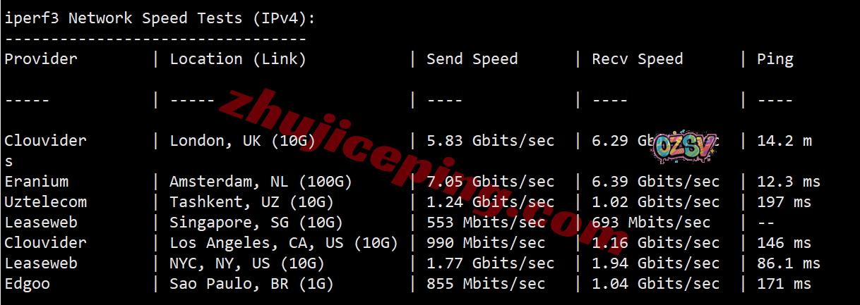 IPERF3部分国际节点的实测数据效果如下所示: