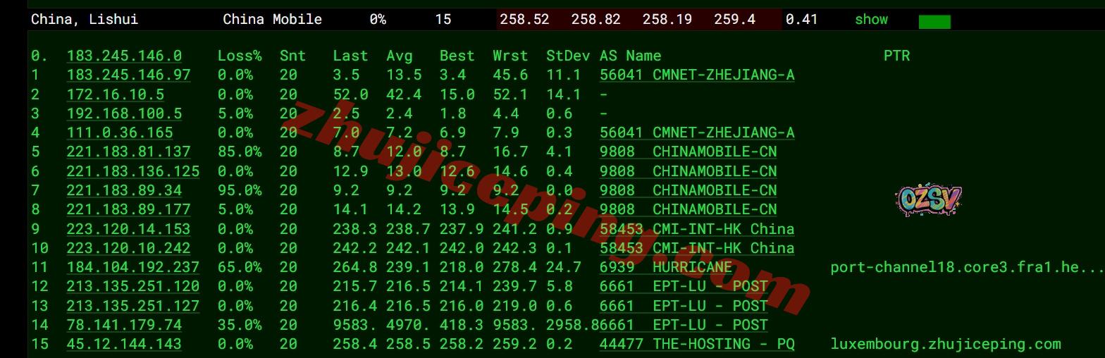 移动去程:直连移动德国法兰克福节点,然后转he.net接post.lu到卢森堡