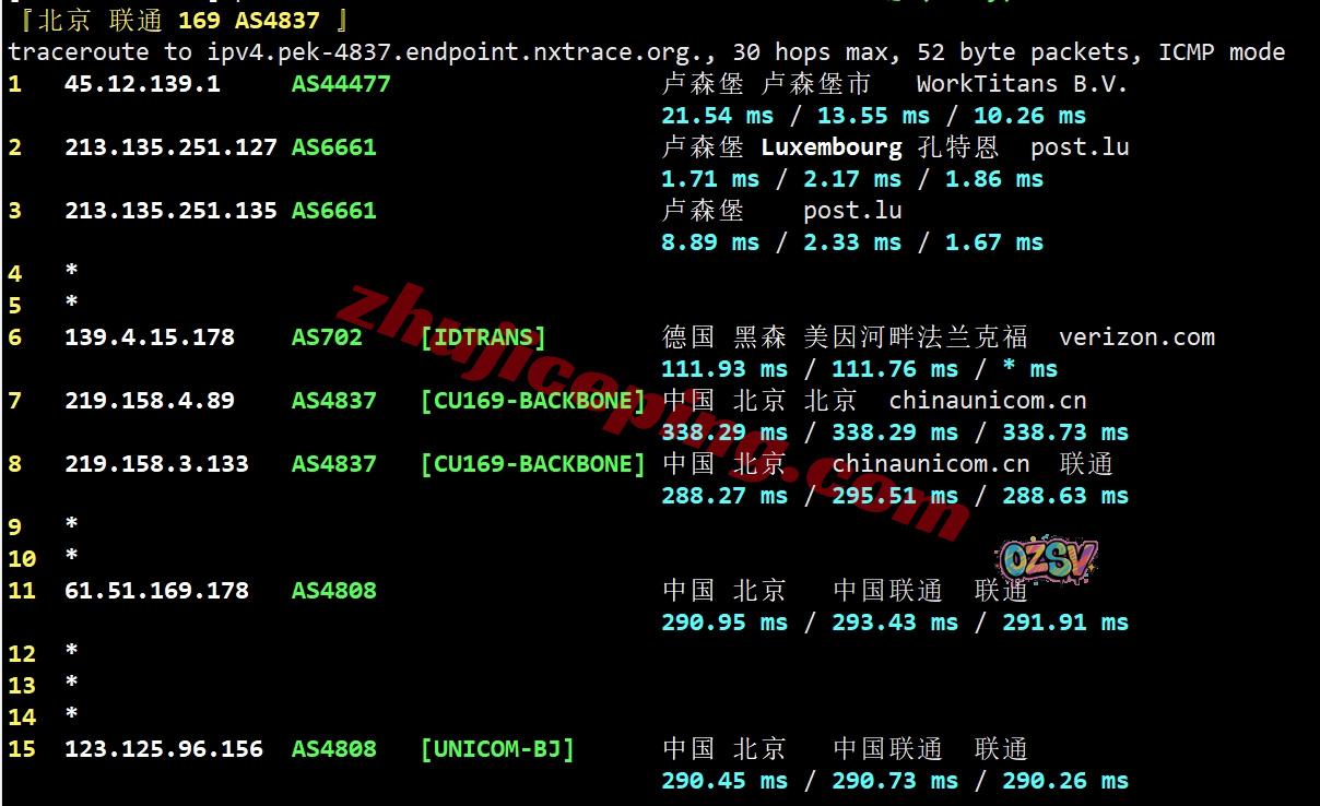 联通回程,走post.lu到德国/荷兰,然后国际线路出海回国;