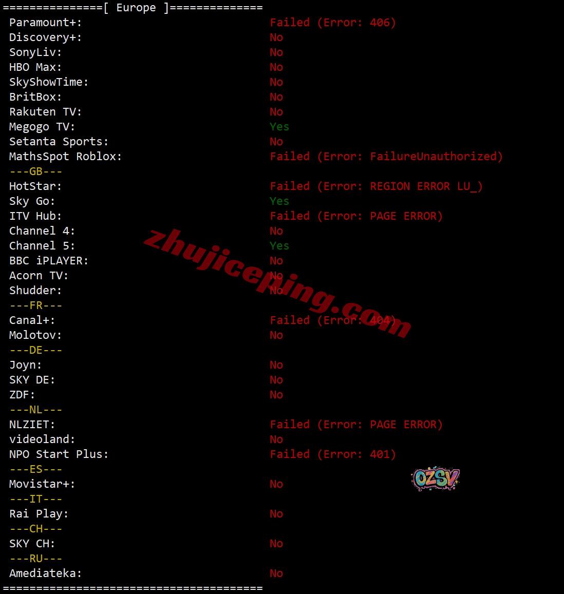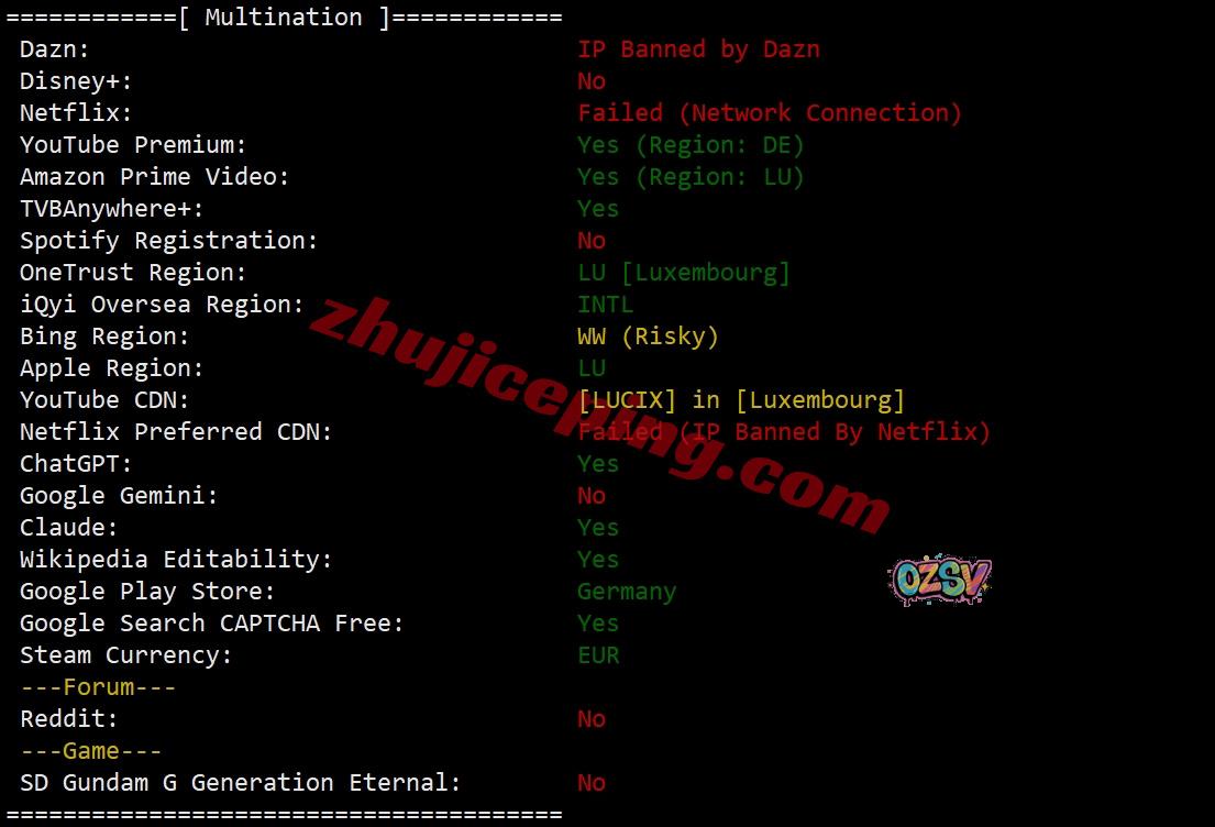 部分流媒体解锁测试,大致结果如下所示: