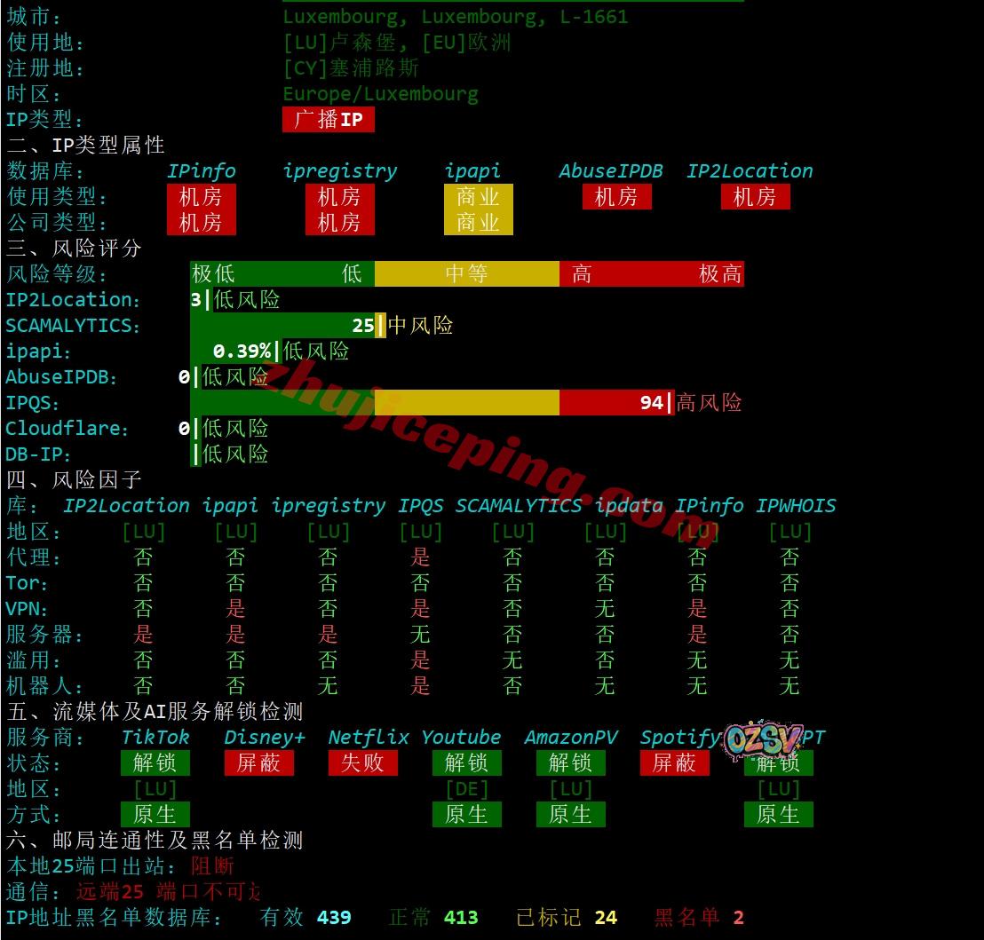IPv4为广播IP,不过归属地依旧显示卢森堡,能解锁tiktok和chatgpt;